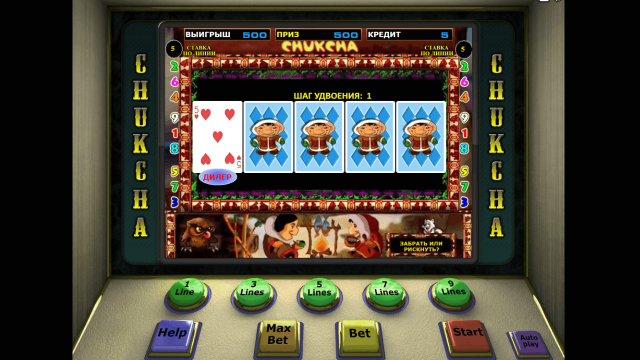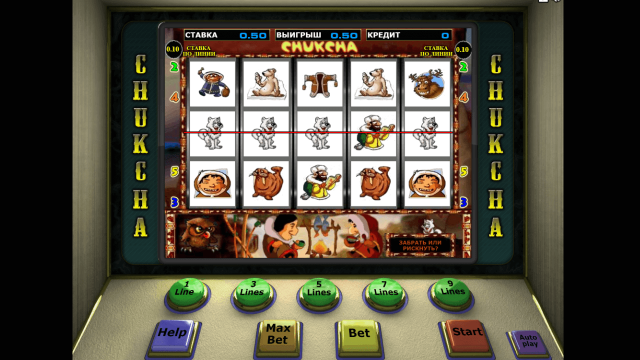 Игровой аппарат Chukchi Man отличается оригинальным сюжетом и расширенным набором бонусных опций. В слоте есть несколько спецсимволов, 2 бонус-игры и рисковый раунд. Джекпот автомата составляет 125 000 монет.
